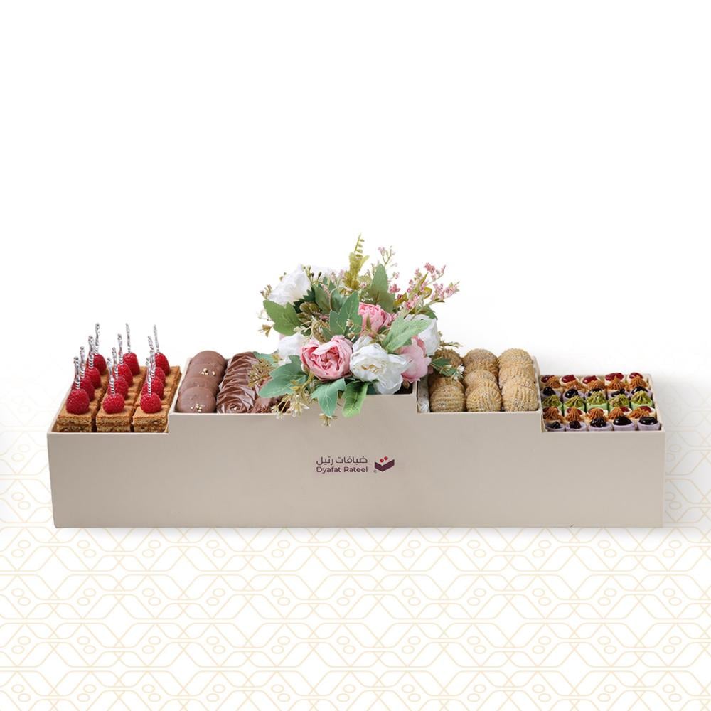 اكتشفوا لذة بوكس الفخامة ( صينية مدرجة كيكة العسل + شوكولاتة + معمول + تايني تشيز كيك ) المختار بعناية ليكون نجمة ضيافاتكم في هذه المناسبة السعيدة 🍰💖 مع جودة لا تضاهى وطعم يُلامس القلوب، دعوا عائلتكم وأحبّاءكم يستمتعون بأجمل اللحظات الحلوة 🌟🥳✨