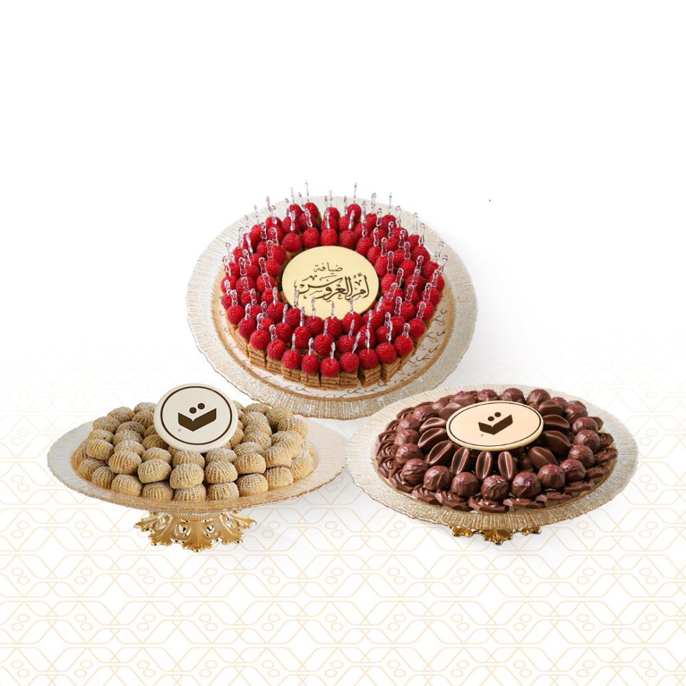 بكج معمول الحجازي + شكولاتة بلجيكي + كيكة العسل ميني - 3 صينية زجاج