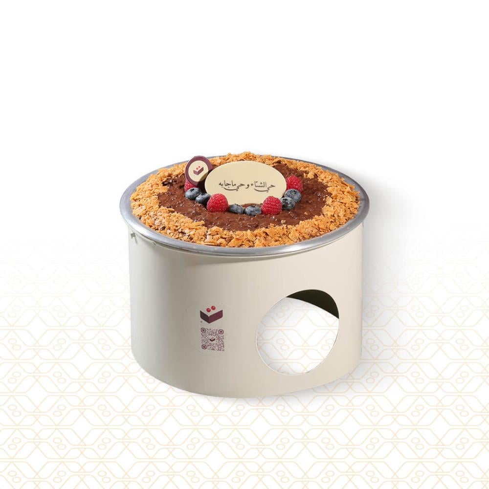 🍰🌰 سخان كيك شوكلت مع صوص الجناش المغطي بطبقه من الشوكولاته الكرنشي والتوت البري (حجم صغير) .