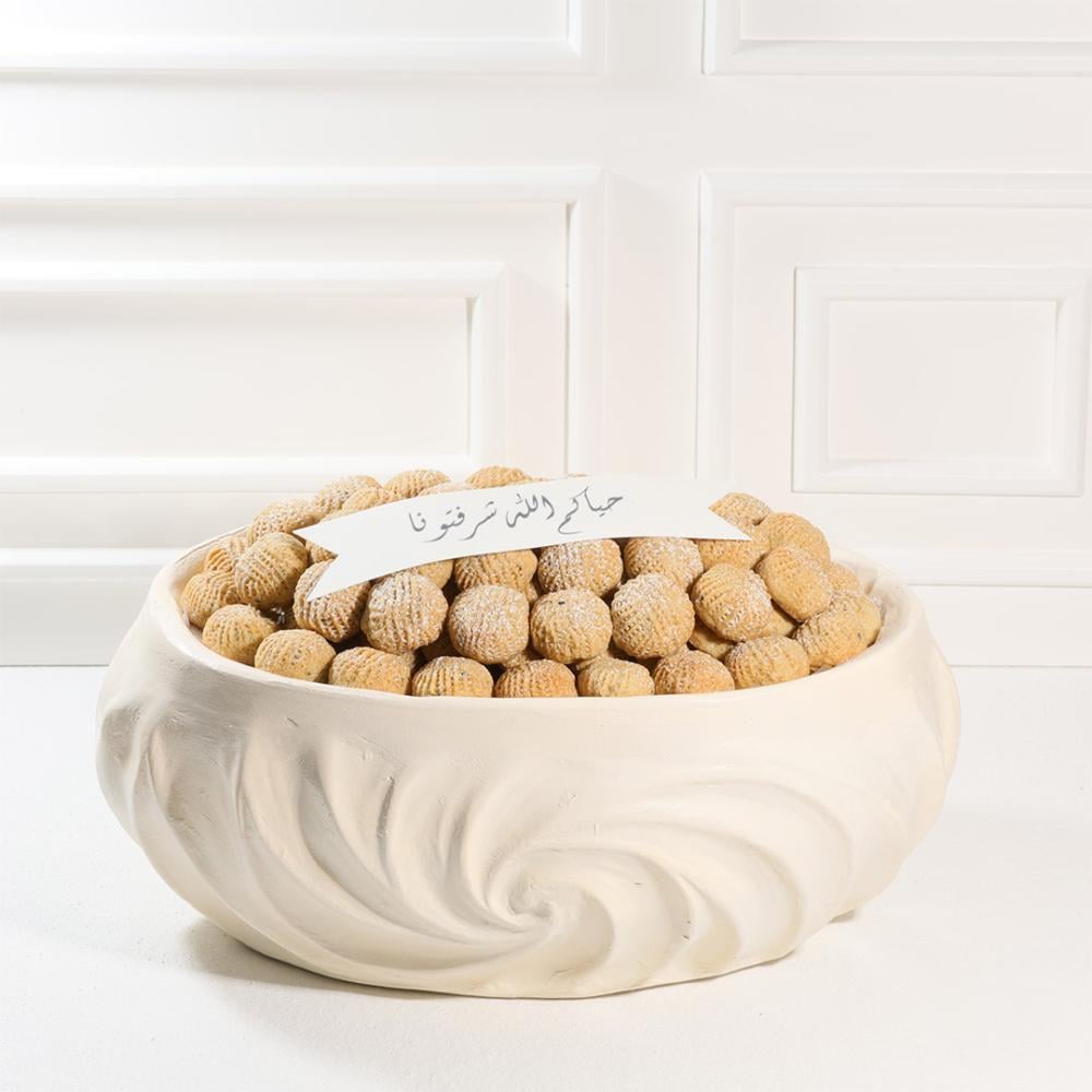 صينية فاخرة بأبعاد 36×23 سم، تحتوي على 1.4 كيلو معمول على الطريقة الحجازية الأصيلة، بحشوة التمر الطبيعي
