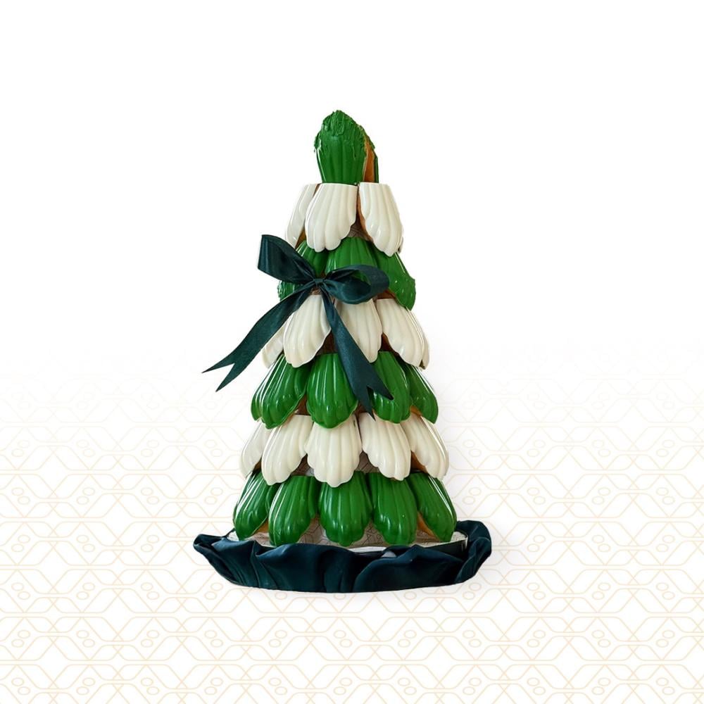 النوع: هرم كيك المادلين الكلاسيك المغطاه بالشوكلاته البيضاء والخضراء.