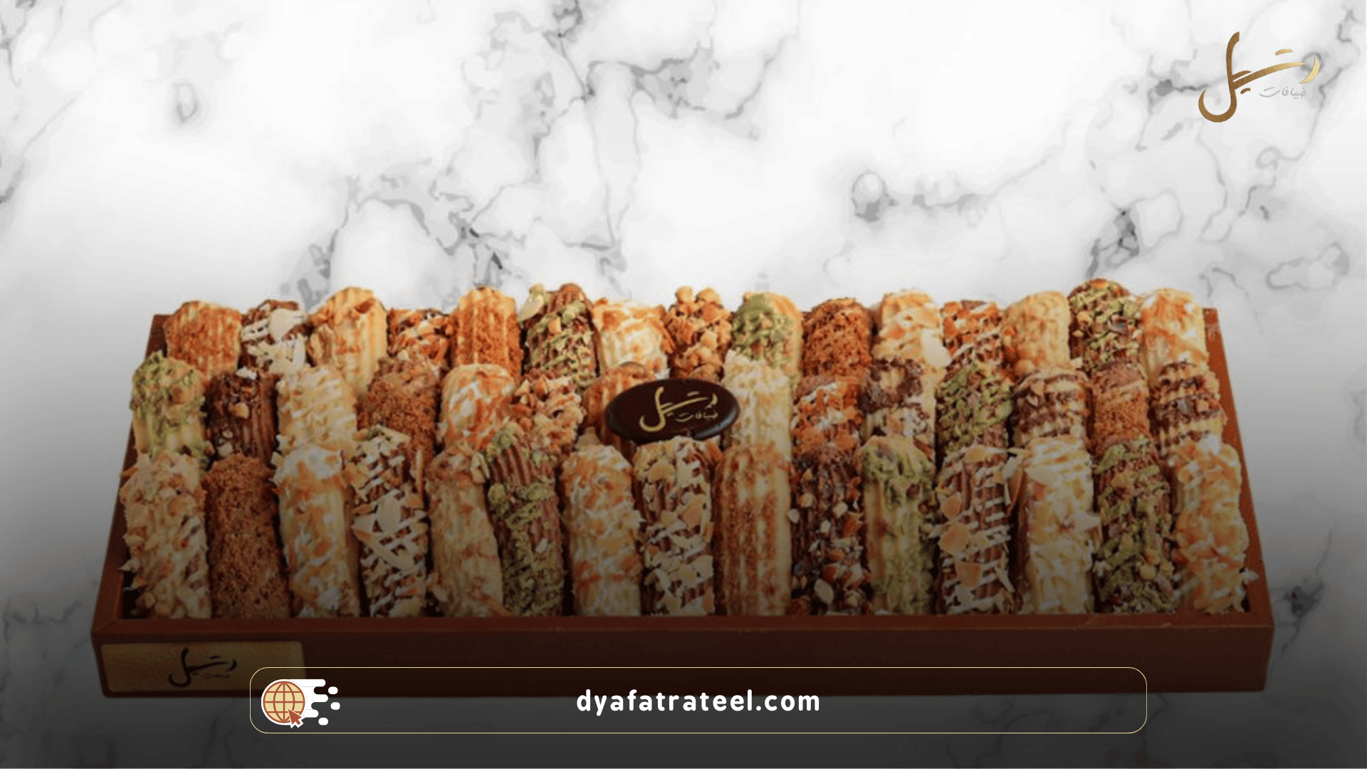At Diyafat Rateel, we offer a curated selection of luxurious desserts that add a special touch to any occasion. From our signature Maamoul to delicate Petit Four, our handcrafted assortments bring elegance and rich flavor to your celebrations. Let’s explore some of our top products — now with free delivery on all orders across Saudi Arabia.
